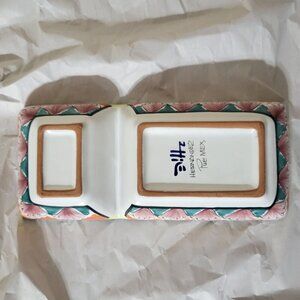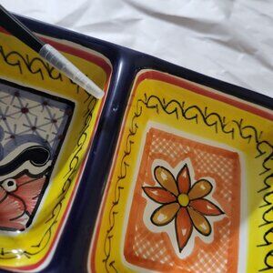 Handmade Mexican Ceramic Dip Bowl By Hernandez - Dual Section Vibrant Colors