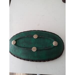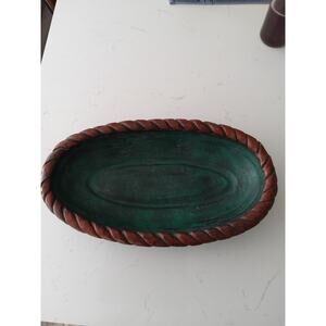 Handmade Mexican Emerald green with brown rope twisted Edge ceramic Bowl platter