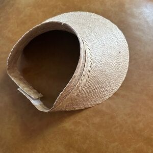 This is a brand new, handmade straw sun visor purchased in Isla Mujeres, Mexico. Velcro closure, wide brim.