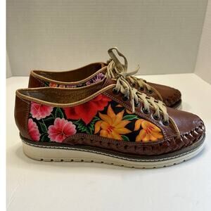 Handmade Mexico Leather Floral Huarache Shoes Women's Size 10