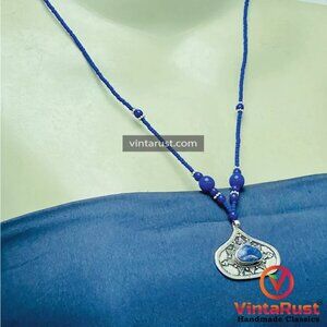 • This lapis lazuli necklace, crafted by the talented artisans of Central Asia, is one of our collection's most distinctive pieces. Wearing this lovely necklace will evoke a sense of depth and royalty. This exquisite piece features a metal lock on both ends. This gorgeous lapis lazuli necklace is a stylish piece from our collection.