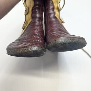 This handmade boots are in good preowned condition, there is some wear and scratch on one of the boot which doesn’t go through the boot (please see last two pictures for details) shoes are super wide and can be worn as barefoot but they don’t have much flexibility as barefoot shoes. Sizes are 10-11 women’s and 9-9.5 men’s.