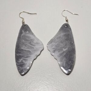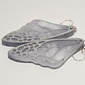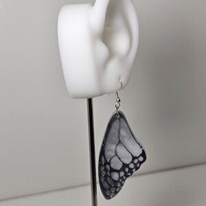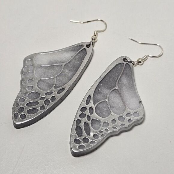 Handmade Monochrome Silver Butterfly Dangly Earrings