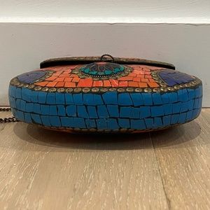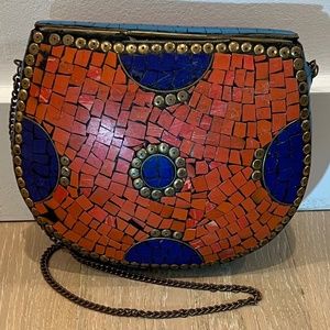 Handmade Mosaic Tile Crossbody Metal Handbag (Red & Blue)