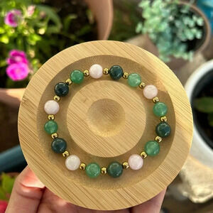 The bracelet features a combination of five stones that work together to activate and balance the heart chakra. Moss Agate is known for its grounding properties, Green Aventurine stimulates growth and abundance, Rhodonite promotes emotional healing, Rose Quartz fosters love and harmony, while Hematite helps to absorb negative energy.