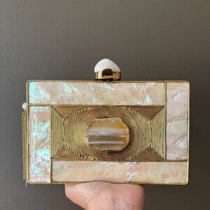 Handmade Mother of Pearl Clutch: Agate Stone Evening Bag