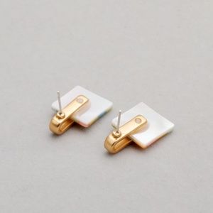 Handmade Mother of Pearl Earrings Geometric Quilted Pattern Earrings