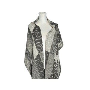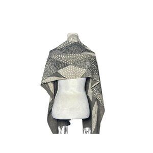 Handmade Mudcloth Ruana Gray and Black Geometric Handwoven Shawl Malian Bogolan