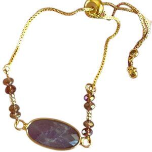 Handmade adjustable Multi Pink/Purple Amethyst stone Crystal Beaded Bracelet 18K GP
