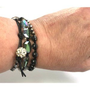 Handmade Multi Wrap Bracelet with Hematite and Large and Small AB Crystal Beads