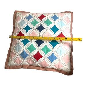 Handmade Multicolor Cathedral Window Quilt Throw Pillow 13” Square Vintage Retro