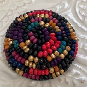 Multicolor Rainbow Artsy Boho Pink Navy Gold Colorful Beaded Round Brooch