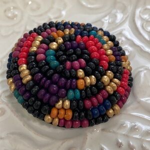 Handmade Multicolor Rainbow Beaded Round Brooch Bohemian Whimsical Artsy