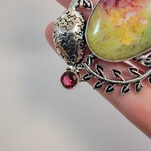 This exquisite pendant features a stunning Watermelon Tourmaline gemstone, set in 925 sterling silver. The Watermelon Tourmaline showcases a beautiful blend of pink, green, and yellow hues, offering a breathtaking color palette that makes this pendant a true statement piece. Surrounding the central gemstone are vibrant Garnet accents, their deep red color beautifully complementing the Tourmaline's natural beauty. The sterling silver setting is intricately designed with delicate leaf motifs, adding a touch of nature-inspired elegance. This one-of-a-kind pendant is a perfect blend of vibrant gemstones and artisanal craftsmanship, making it a perfect addition to any fine jewelry collection. Whether for a special occasion or to elevate your everyday style, this piece exudes luxury and charm.