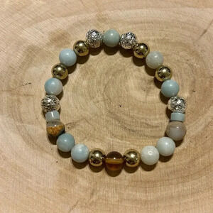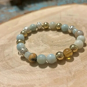 🩵🤍💛Mystic Aura Quartz + Amazonite + Lava Bead stretch Bracelet💛