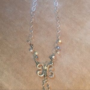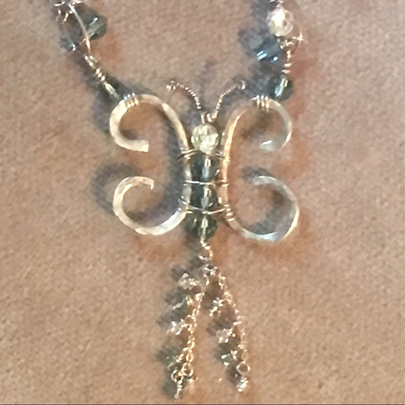 Butterfly design with blue & clear Swarovski crystals. Many hours and much money was put into this project that created a beautiful 20" design necklace.