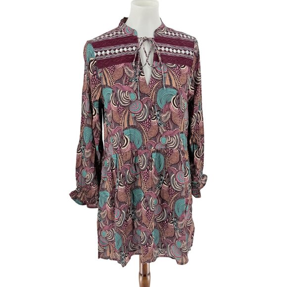 This handcrafted tunic dress combines intricate embroidery, lace details, and a relaxed boho silhouette. Ideal for those seeking unique, artisan fashion pieces.