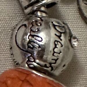 Handmade – NWOT – 925 SS plated charm bracelet. Orange beads. Relationship Charm
