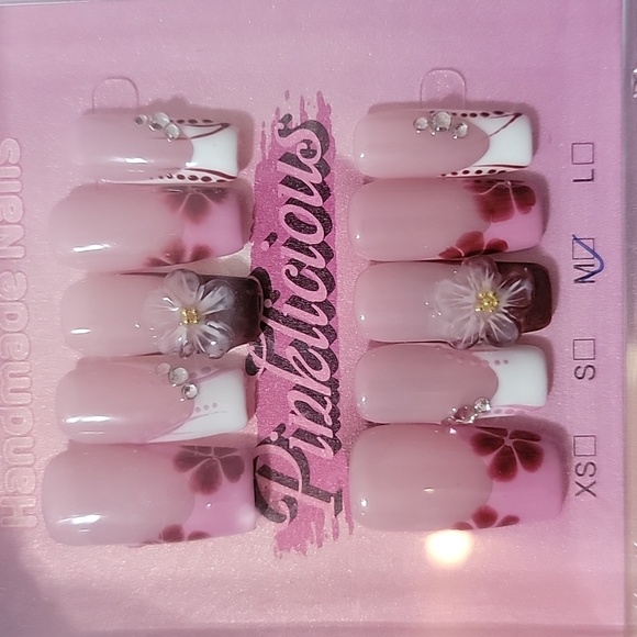 Purchased at an outdoor mall in OC! I love this brand but these were just too long for me. Use any glue or gel with light if you want to reuse! Size M. (pretty average size)