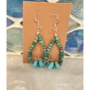 Handmade Native American Genuine Turquoise & 925 Silver Navajo Pearl Earrings