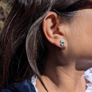 Handmade Native American Man-made White Opal Flower Stem Stud Earrings Jewelry**