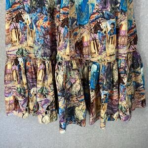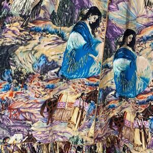 This one’s a true statement skirt ✨ Handmade with a gorgeous multicolor Native American inspired print—featuring horses, teepees, and bold desert tones. The tiered prairie silhouette with gold-stitched trim makes it perfect for a western boho vibe 🤠🌵