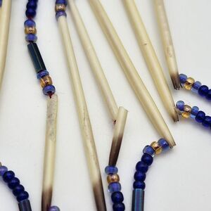 One of the porcupine quills is broken, and some of the tassles have a bit of extra thread, as shown in pictures.