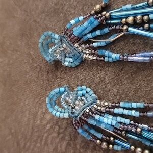Handmade Native American Western Glass Gemstone Beaded Fringe Earrings