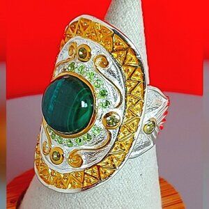 Handmade Natural Malachite 925 Sterling Silver Ring Sz 7.5 (Brand new without tag)
