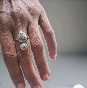 This sz 8 Natural Arizona Yooperlite Sterling Silver Ring features a unique round and teardrop shaped stones in black and gray colors which explodes with stunning orange fluorescence color under UV light. Handmade in India, the ring is signed by the maker and crafted with sterling silver. The cocktail-style ring is perfect for special occasions like Mother's Day, Graduation, Christmas, Anniversary, Father's Day, and Birthday. With a main stone creation of natural Yooperlite and a total carat weight of 7.5ctw, this ring exudes a nature-inspired theme with fairytale and fantasy elements, making it a charming and one-of-a-kind piece of fine jewelry.
