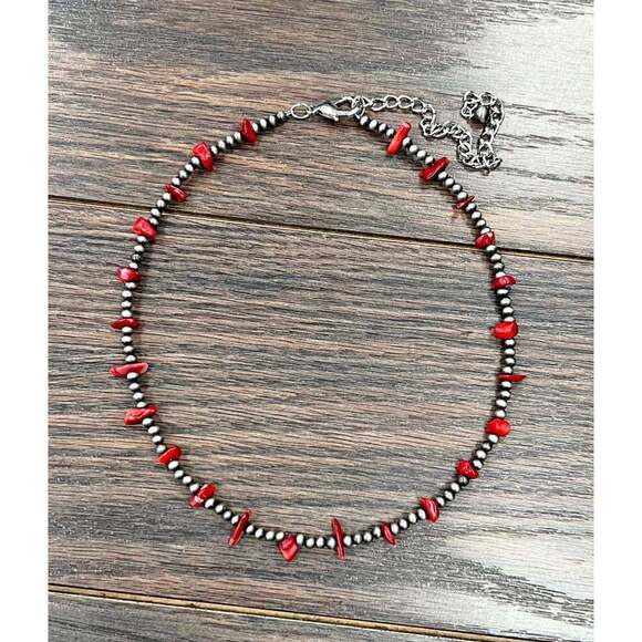 Elevate your jewelry collection with our stunning Handmade Navajo Bead and Coral Chip Stone Necklace, ranging from 16 to 21 inches long. This exquisite piece features delicate 4mm Navajo beads combined with vibrant coral chip stones, offering a unique charm that stands out in the realm of artisan jewelry. Each necklace is handcrafted, ensuring that no two pieces are alike, making it a truly one-of-a-kind addition to your accessory wardrobe.