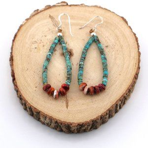 Handmade Navajo Kingman Turquoise and Spiny Oyster Loop Dangle Earrings **