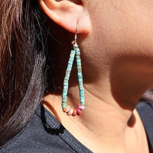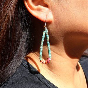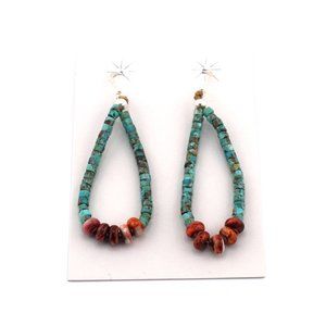 - Navajo Kingman Turquoise and Spiny Oyster Dangle Earrings