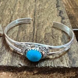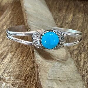Handmade Navajo Sterling Silver & Turquoise Baby Cluster Cuff Bracelet