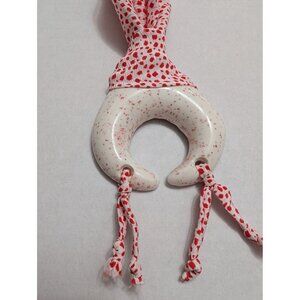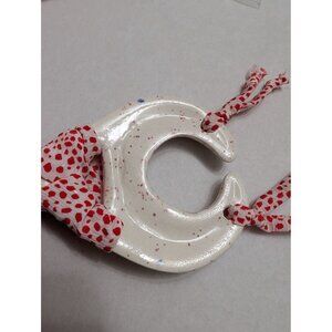 Handmade Necklace & Earrings scarf bandana ceramic red white dots moon 13"