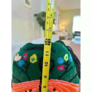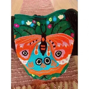 Very good condition drawstring needle punch handmade bag. Silky interior. Frill ends of drawstring closure. Normal wear on interior. Purchased for $187