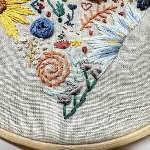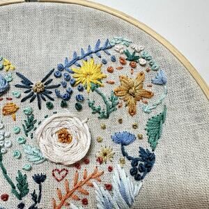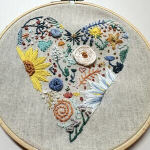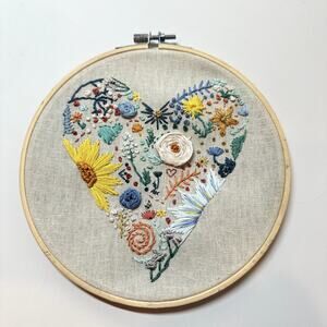 Handmade Needlepoint Heart on Hoop Floral Embroidery Wall Decor Art Gallery