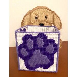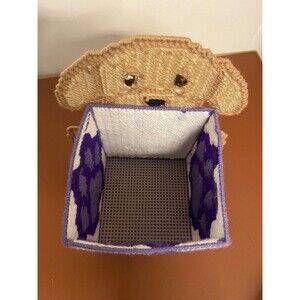 Handmade Needlepoint Plastic Yarn TREAT BOX & PHOTO FRAME Dog Puppy Retriever