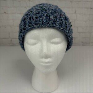 Hand-knit unisex warm and cozy beanie fits most Adult Small - Medium sizes, blue basketweave pattern, stretchy, easy care, soft, and can be worn rolled up or down. Care machine wash cold lay flat to dry. Material coveted donegal tweed pure wool. The sustainable yarn was made in the Republic of Ireland from Donegal Tweed sweaters they repurposed. Condition is new and never worn. Please preview measurements to ensure fit. This was hand-knit in San Jose by an artist with a passion and talent for creating quality beanies, sweaters, scarfs and dog sweaters.