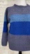 Handmade New Unisex Blue Gray Striped Crewneck 3/4 Sleeve Knit Sweater L/C41