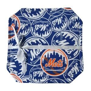 Handmade New York Mets Hot Mats Trivet Set of 4 8" x 8" Baseball MLB Gift. Perfect for the Yankee's fan in your life! Washable cotton fabric with interior batting. Ideal to go under any hot dish on your dining room table. Fast shipping.