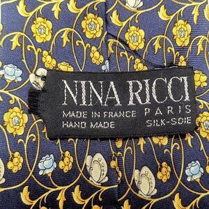 Handmade Nina Ricci Navy Blue Gold Floral Made in France Silk Tie