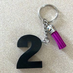 **THIS PRICE IS ONLY FOR THIS LISTING** you cannot customize this one **CHECK OUT THE TOP LISTINGS IN MY CLOSET IF YOU WANT TO CUSTOMIZE YOUR OWN LETTER/NUMBER!!** Completely handmade with resin The "2" contains black glitter and some brown/copper glitter on the back Little purple tassel attached.