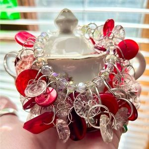 Handmade OOAK antique glass button bracelet. Contains rare antique clear and red glass beads. Bracelet base is Swarovski crystals. Toggle clasp. 7”.