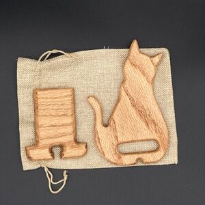 Handmade Oak Wood Cat Phone Holder Made in USA Come with Linen Bag