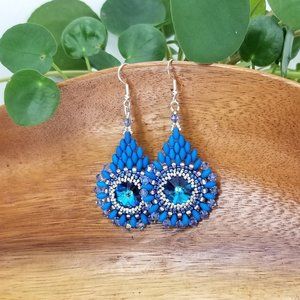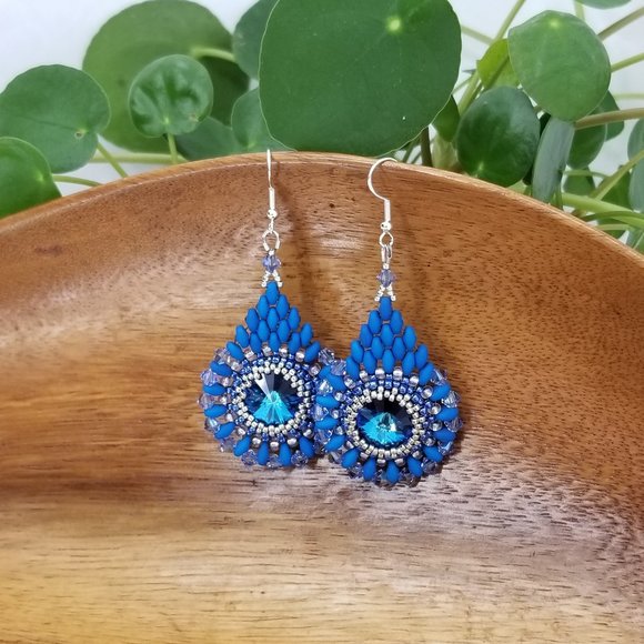 Handmade Ocean Blue Crystal Cathedral Window Earrings