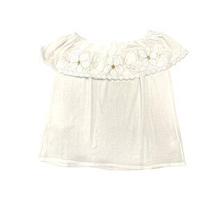 Handmade Off Shoulder White Cotton Blouse Floral Embroidery Back Lace Trim Large