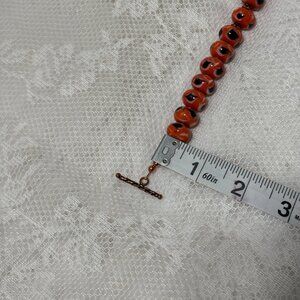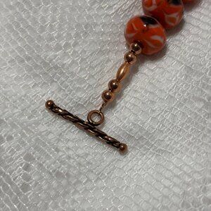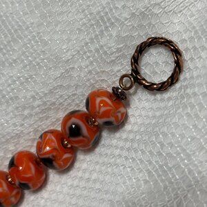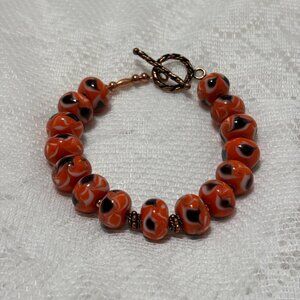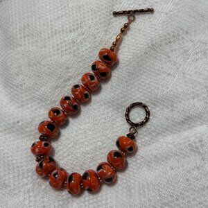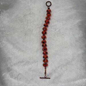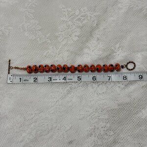 Handmade Orange Swirl Glass Bead Bracelet 8.5" Fits 7" Copper Toggle Clasp
