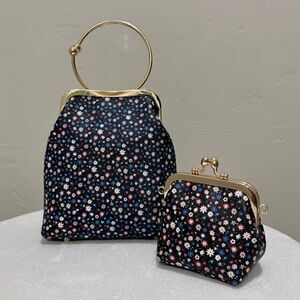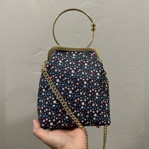 One of a kind. Chic design, great quality. Handmade from floral print leather with metal clasp frame. Bracelet style kisslock has a unique look. Included a small purse. Use in multiple ways, with metal chain or leather strap both can be hand hold, wrist, shoulder, or crossbody. Use together or separately.