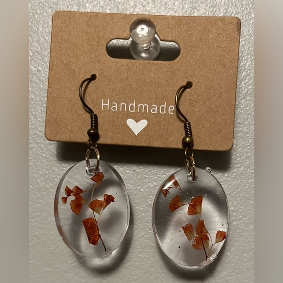 Beautiful handmade oval resin earrings featuring a delicate floral design. Perfect for adding a touch of nature to any outfit.